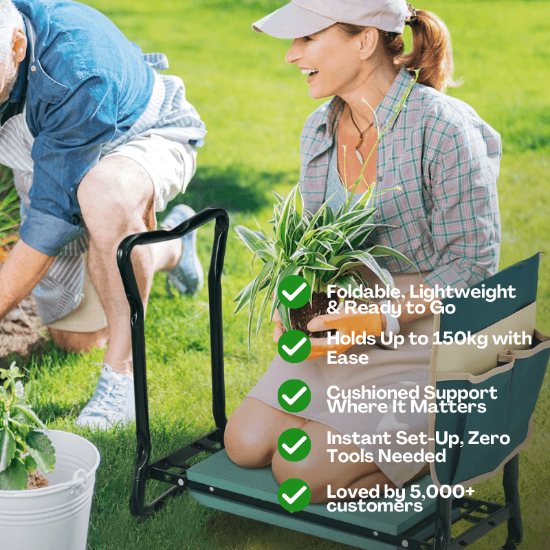 Sore knees or a stiff back holding you back in the garden? TheKneelMate™is your all-in-one foldable kneeler and seat, designed for pain-free planting, pruning, and weeding, so you can enjoy gardening without the strain.