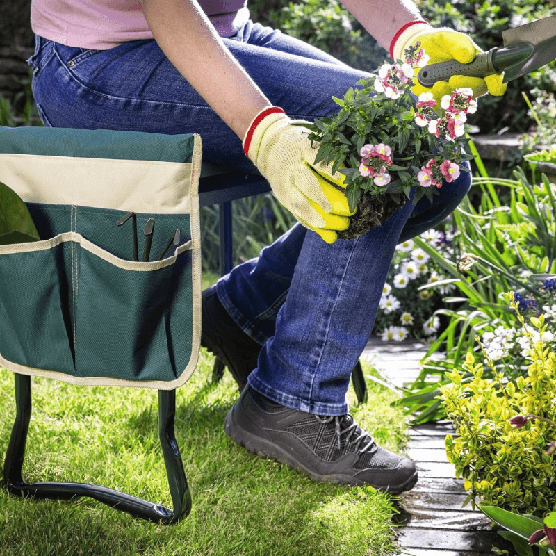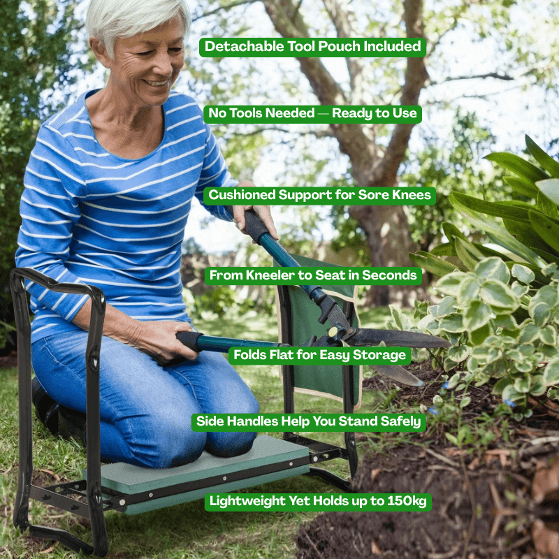 Absolutely. The cushioned kneeling pad reduces pressure on sore knees, while the seat and side handles help minimise back strain and make it easier to get up and down.